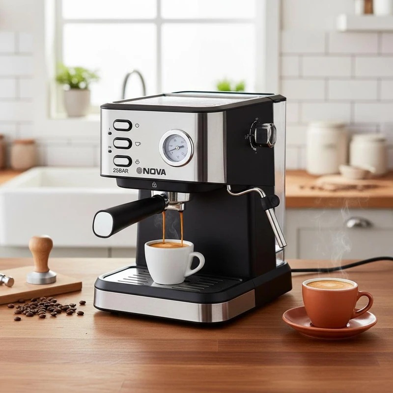 اسپرسو ساز 1700 میلیلیتر نوا مدل NCM-147 EXP یک دستگاه نیمهاتوماتیک خانگی است که برای علاقهمندان قهوه حرفهای طراحی شده است. این دستگاه با توان 2200 وات، فشار بخار 25 بار و بدنه آلومینیومی تلاش میکند تجربهای مشابه با دستگاههای نیمهحرفهای ارائه دهد. تمرکز اسپرسو ساز 1700 میلیلیتر نوا مدل NCM-147 EXP بر استخراج یکنواخت، بخاردهی قوی و استفاده آسان، آن را به گزینهای مناسب برای مصرفکنندگان خانگی تبدیل کرده است؛ مصرفکنندگانی که میخواهند کیفیتی نزدیک به کافیشاپ را در خانه تجربه کنند.