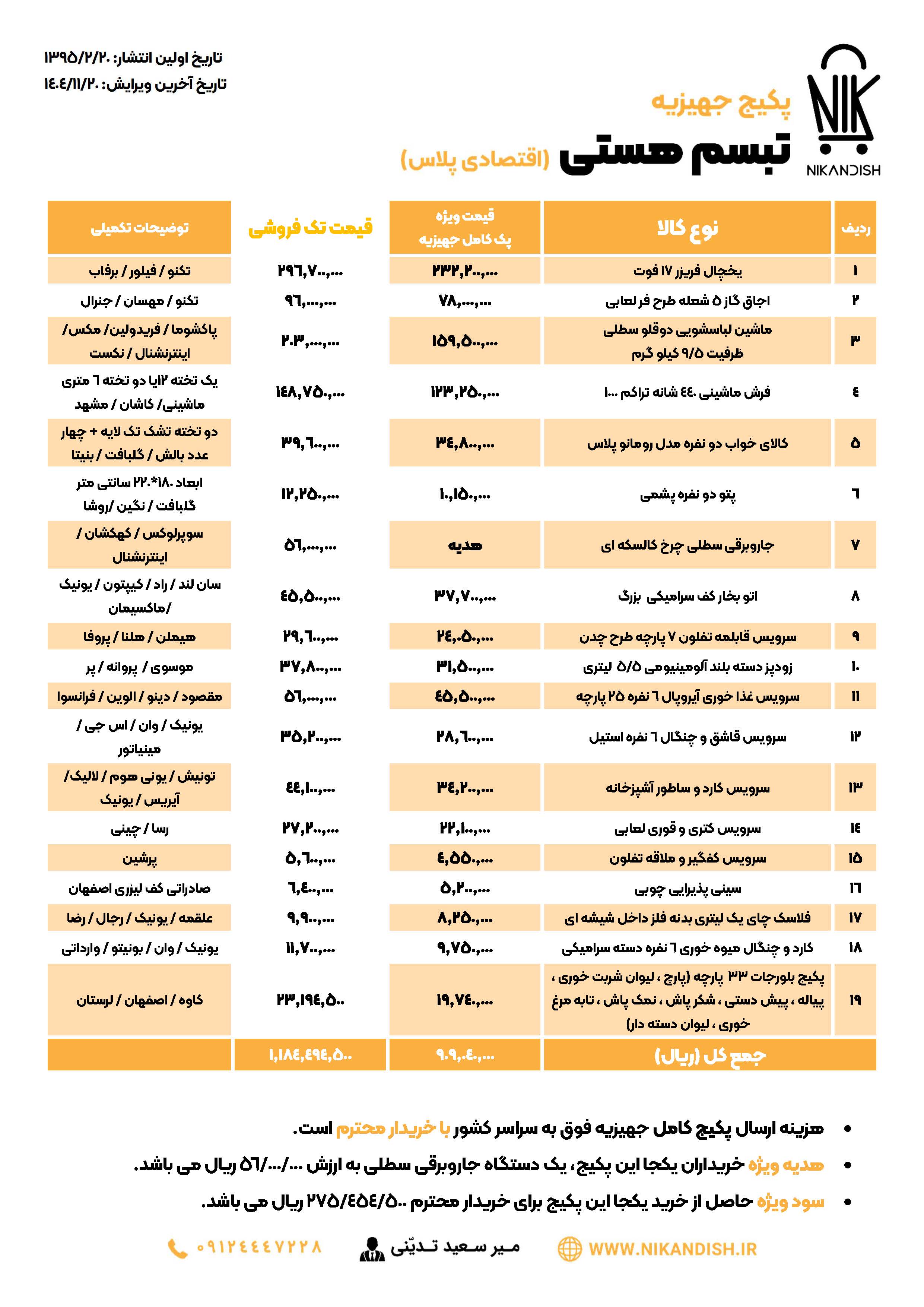 - برای دانلود فایل PDF آخرین نسخه پکیج های جهیزیه نیک اندیش به تاریخ 1404/11/20 اینجا کلیک نمایید.